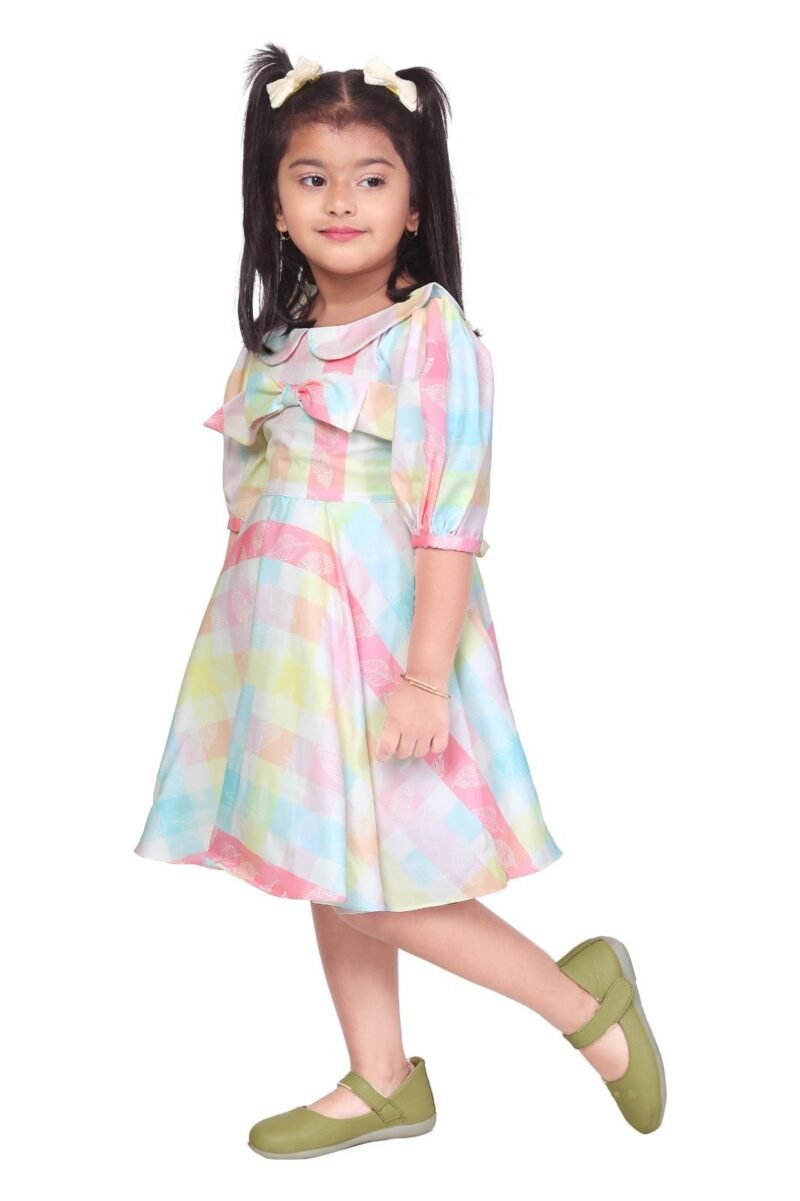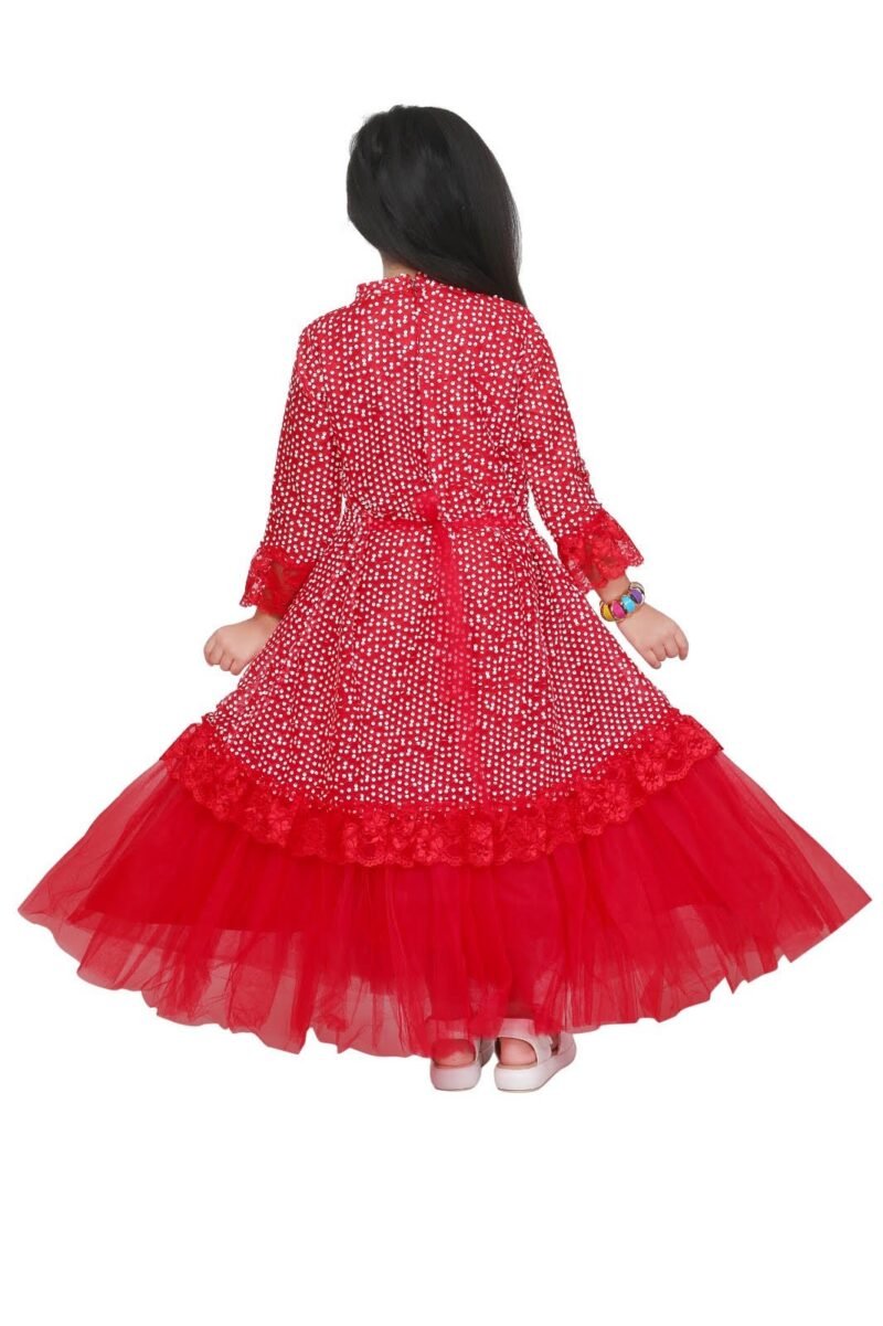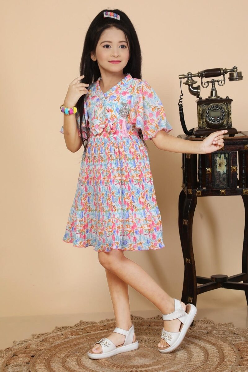Dress your little fashionista in our adorable Pinky Chinky (Ding Dong) Girls’ Polka Dot Peplum Top Ruffle Palazzo Set! This charming ethnic wear ensemble features a light blue polka dot peplum top with delicate ruffles and a stylish mandarin collar, perfectly paired with comfortable white ruffle palazzos. Ideal for wholesale buyers looking for trendy and high-quality kids’ ethnic wear.